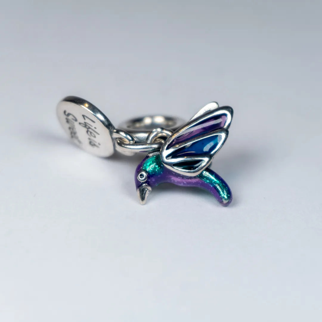 ✨ Predstavljamo Pandora dvostruki viseći privjesak Kolibrić – nježan i razigran simbol radosti, slobode i slatkih trenutaka života. Privjesak nosi ugraviranu poruku