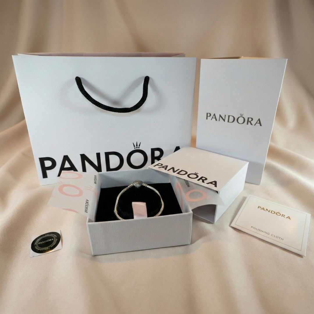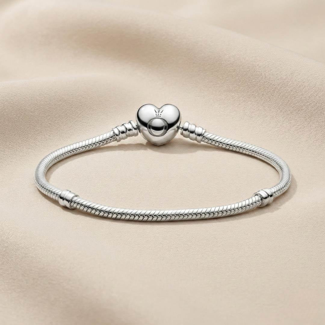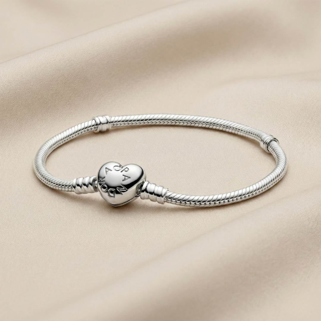 ✨ Predstavljamo Pandora narukvicu sa srcolikom kopčom – elegantan i romantičan komad nakita koji savršeno ističe tvoje omiljene privjeske. Ova narukvica izrađena je od 925 sterling srebra i odiše profinjenošću te bezvremenskim dizajnom.