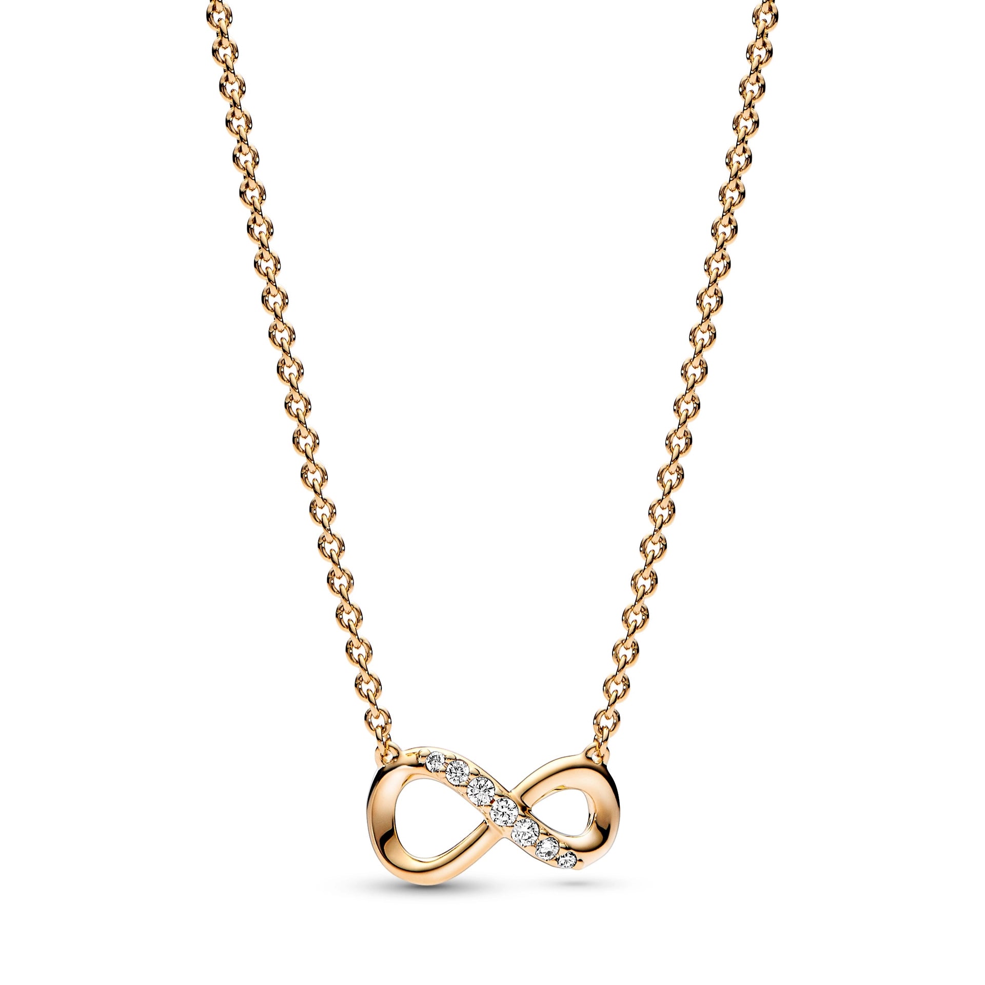 Pandora Ogrlica Sparkling Infinity Collier – Simbol Beskonačnosti (Posebna Pandora legura metala s 14k pozlatom)