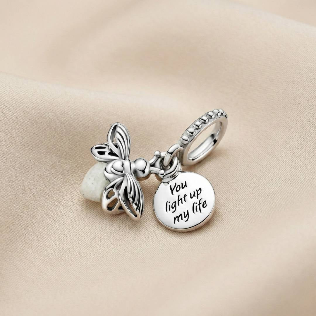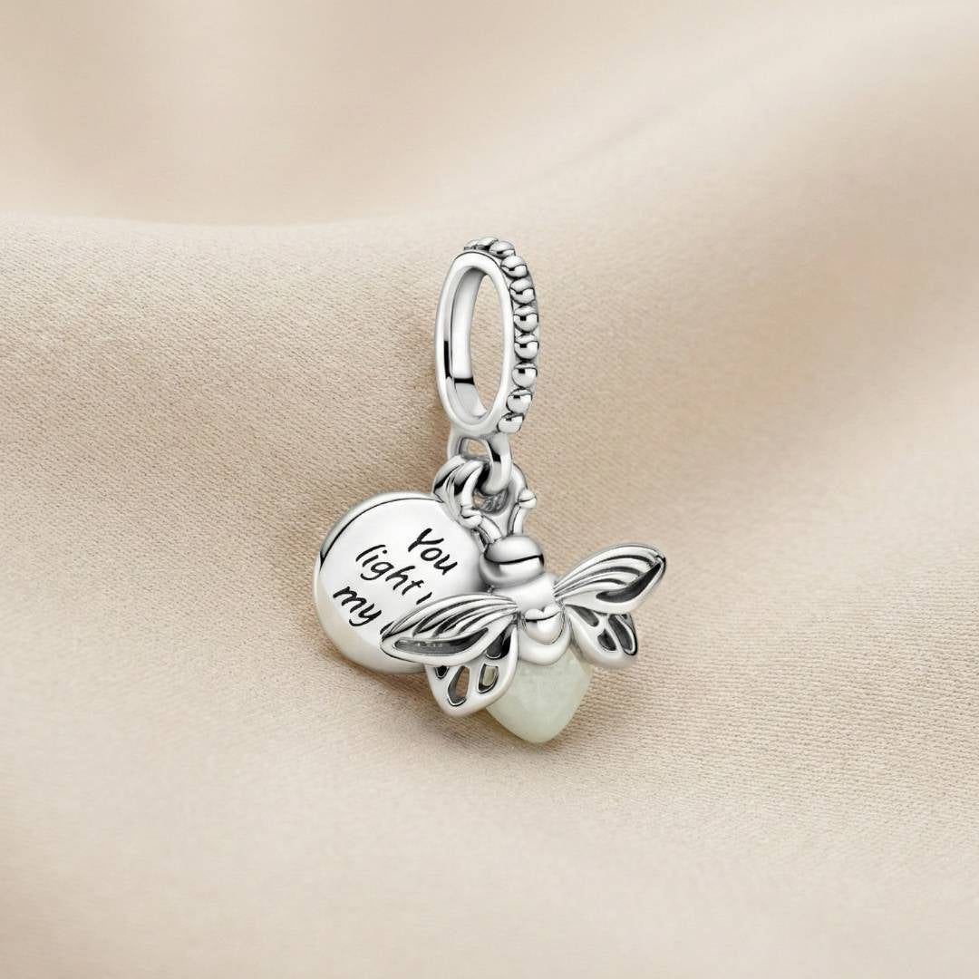 ✨ Predstavljamo Pandora viseći privjesak Krijesnica koja svijetli u mraku – nježan simbol svjetlosti, nade i ljubavi koji doslovno obasjava tvoj stil. Privjesak ima zaobljeno staklo koje na dnevnom svjetlu izgleda bijelo, a u mraku svijetli mliječnozelenim sjajem, nakon što se napuni izlaganjem suncu ili UV svjetlu.