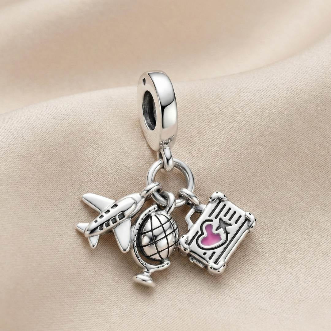 Pandora Viseći Privjesak Zrakoplov, Globus i Kofer (Srebro 925)